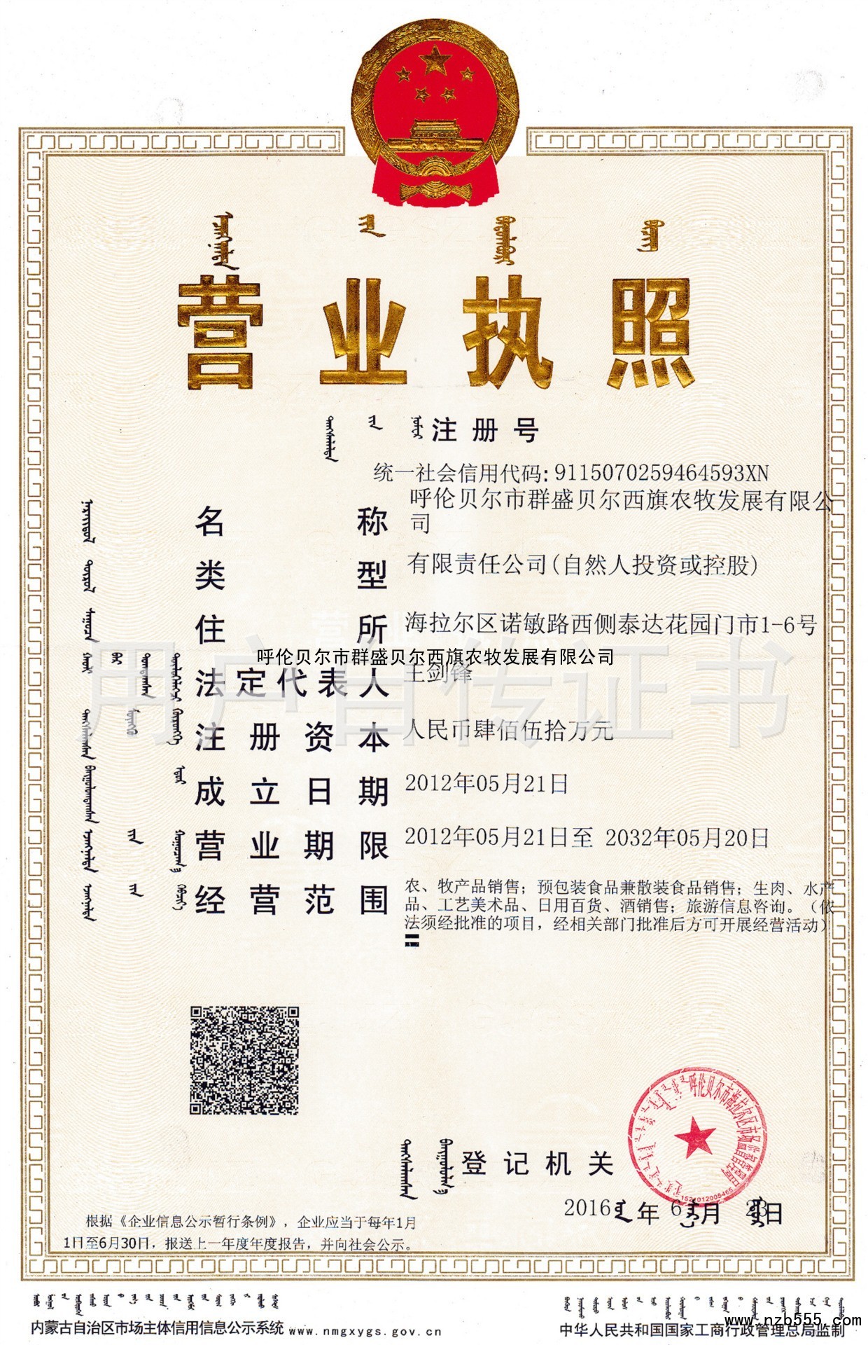 榮譽(yù)資質(zhì) 呼倫貝爾市群盛貝爾西旗農(nóng)牧發(fā)展有限公司