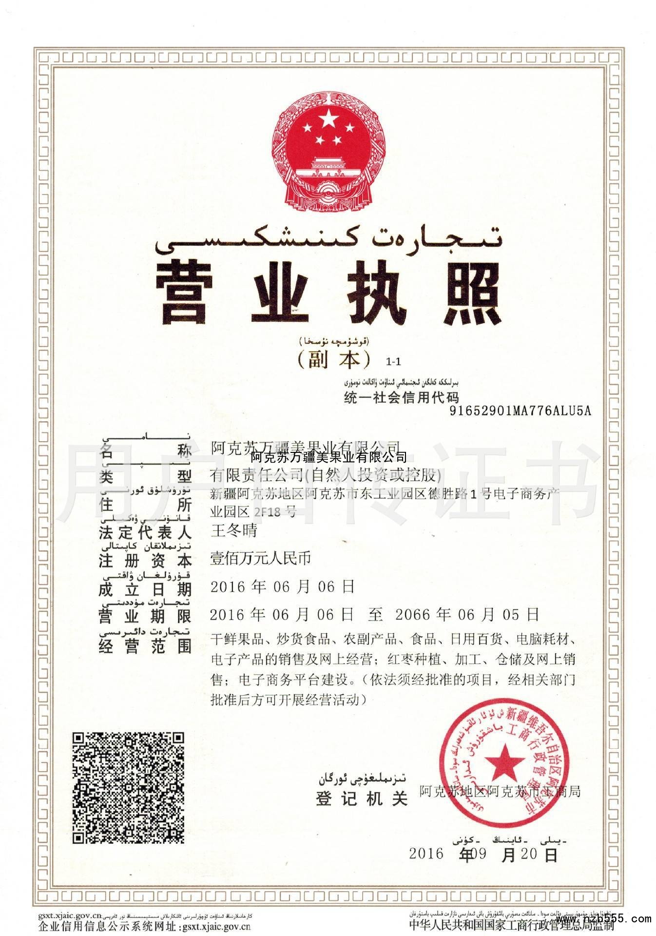 阿克蘇萬疆美果業有限公司
