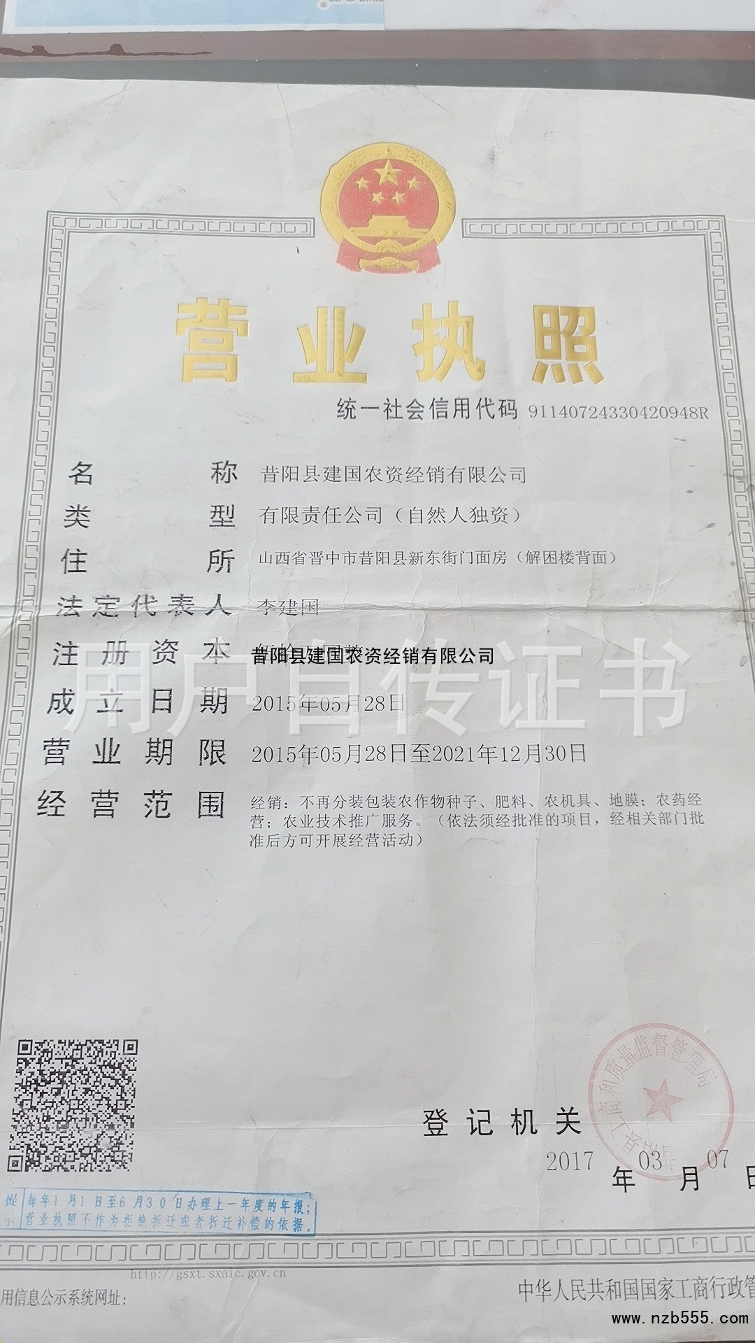 昔陽縣建國農資經銷有限公司