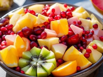 遵循“三色五味”搭配法則,讓營(yíng)養(yǎng)與口感雙重在線。紅色系選草莓與白心火龍果,花青素與維生素C碰撞出酸甜火花,洗凈后無(wú)需額外處理,保留完整鮮味;黃色系搭配蜜瓜與黃桃,高鉀含量助力維持電解質(zhì)平衡,清甜風(fēng)味中和的燥熱感 ;綠色系必備牛油果與奇異果,葉酸與葉綠素帶來(lái)清新口感,牛油果綿密的質(zhì)地還能替代部分醬料,自然提升沙拉順滑度。點(diǎn)綴幾顆藍(lán)莓或椰片,抗氧化成分與健康脂肪讓營(yíng)養(yǎng)更全面,視覺(jué)上也更具吸引力。