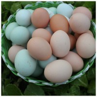 蛋品產(chǎn)自鄂北山地圣龍山周邊,由農(nóng)產(chǎn)每天一次趕集時賣到本公司的收購點,多的一戶十斤、八斤,少的一斤、兩斤,蛋質(zhì) 新鮮。全鎮(zhèn)一萬二千戶居民約六千戶養(yǎng)有土雞,約有二千戶有余蛋出售至我公司收購點,旺季(清明前后)日收蛋亮三千余斤,近四萬枚產(chǎn)品顏色雜亂不一:有青殼、麻殼、沙殼、白殼、紅殼等。蛋個大小不一,每斤約十一至十二個,色鮮黃、味濃。