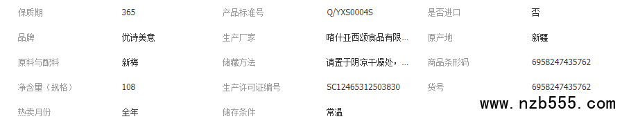 優詩美意伽師西梅干108g新疆特產無添加原果晾曬無塵烘干獨立包裝