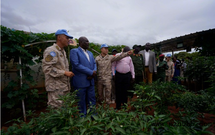 當(dāng)?shù)貢r(shí)間5日,南蘇丹西加扎勒河州代理州長(zhǎng)攜農(nóng)業(yè)部長(zhǎng)等十余人組成考察團(tuán),來(lái)到中國(guó)第13批赴南蘇丹(瓦烏)維和工兵分隊(duì)營(yíng)區(qū)考察學(xué)習(xí)蔬菜種植技術(shù)。工兵分隊(duì)向考察團(tuán)講解了改良土壤、播種育苗、澆水灌溉和田間管理的方法。(于洪澤 羅坤 李飛宇 蔡鑫)