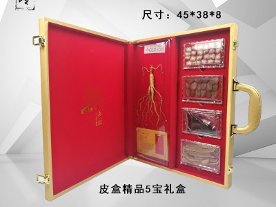 供應(yīng)長白山山參東北人參靈芝鹿鞭鹿茸五寶禮盒 皮盒