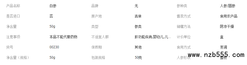 長白山人參禮盒白參50克裝煲湯泡酒